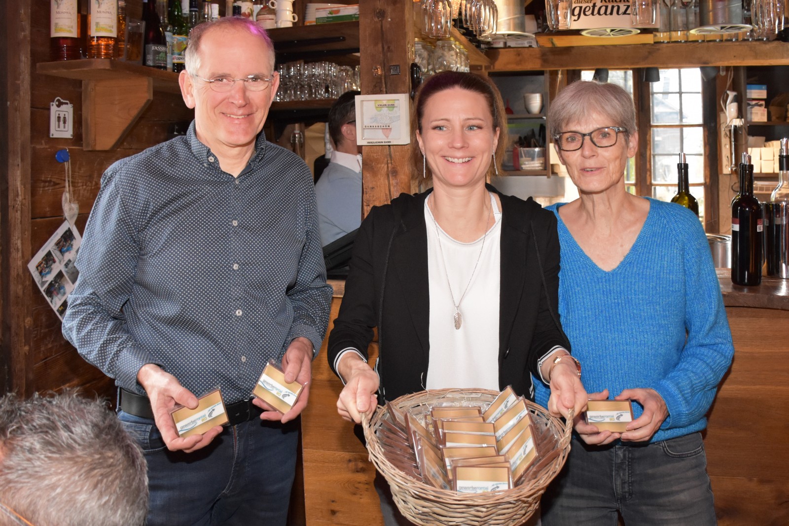 Der Gewerbeverein Ebikon und Umgebung feiert im 2024 sein 90-Jahr-Jubiläum unter dem Motto «Wir starten durch!». Zum Auftakt verteilte ein Teil des Jubiläums-Organisationskomitees Schoggitafeln am Neujahrsapéro im «Sprötzehüsli».